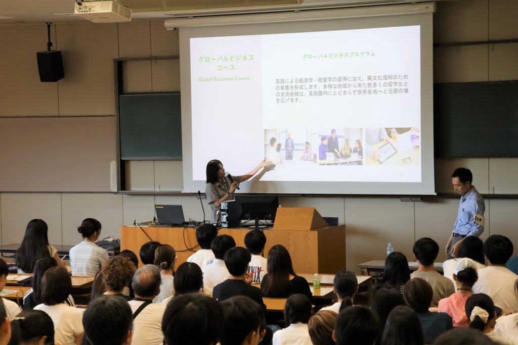 今年度は、本学6学部のオープンキャンパスを7月中旬から8月中旬にかけて開催しました。いずれも猛暑の中での開催となりましたが、多くの高校生や保護者の方等にご来場いただきました。本記事では、国際商経学部・社会情報科学部のオープンキャンパスの様子をご紹介します。なお、他学部のオープンキャンパスの様子についても、別記事にてご紹介します。