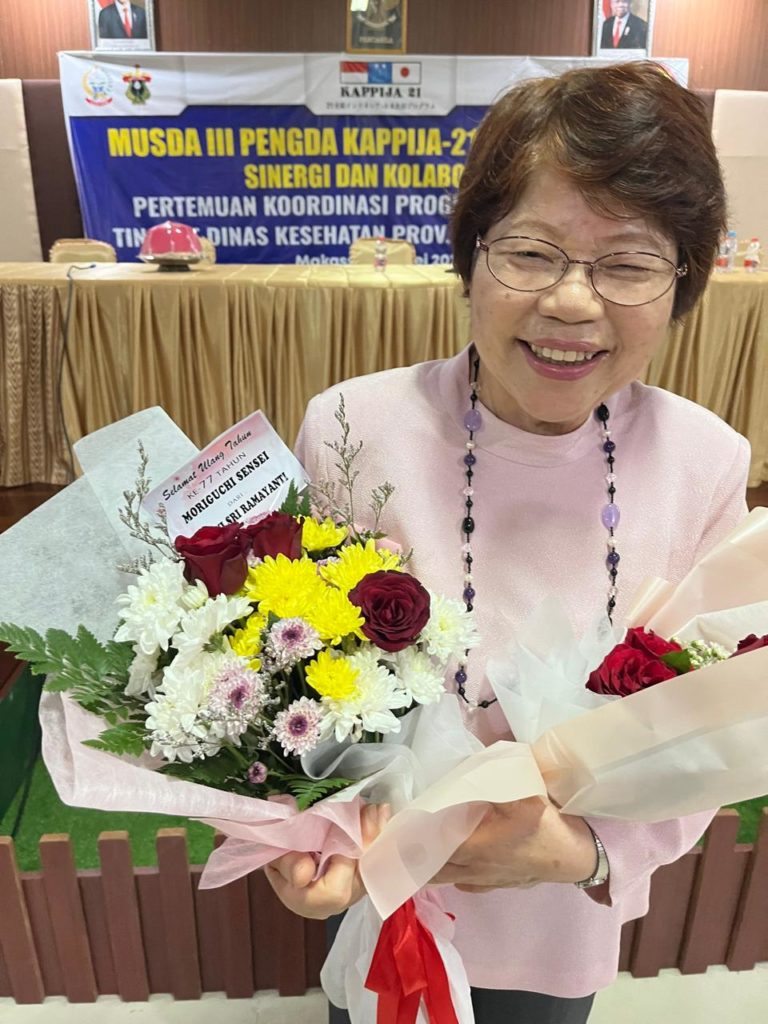 森口育子名誉教授(2024年5月にインドネシアの南スラウェシ州で開催された地域看護コーディネーター会議に出席された際のもの)