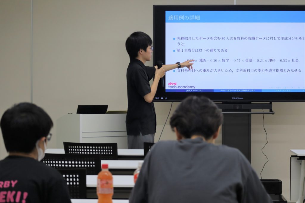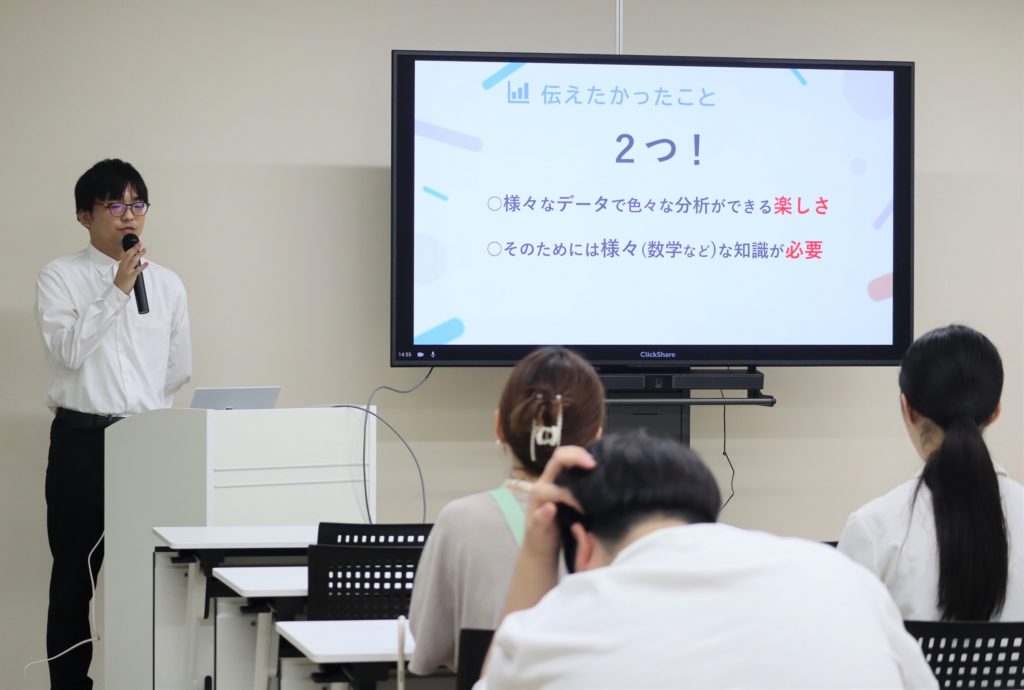 また、「学生によるDS講義」には滋賀大学の学生が登壇し、データサイエンス(DS)に関する講義を行いました。