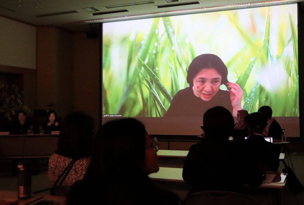 インドネシア大学看護学部母性看護領域科助教授のDr. Suryane Sulistiana Susanti スリヤネ・スリスティアナ・スサンティ氏からは「Graduate Nursing Education in Indonesia Current State,Challenges and Innovations(インドネシアにおける卒後看護教育 現状、課題、そして革新)」と題し、インドネシア大学大学院での看護教育の現状や新たに進めている他大学院との共同学位プログラムについてお話をいただきました。