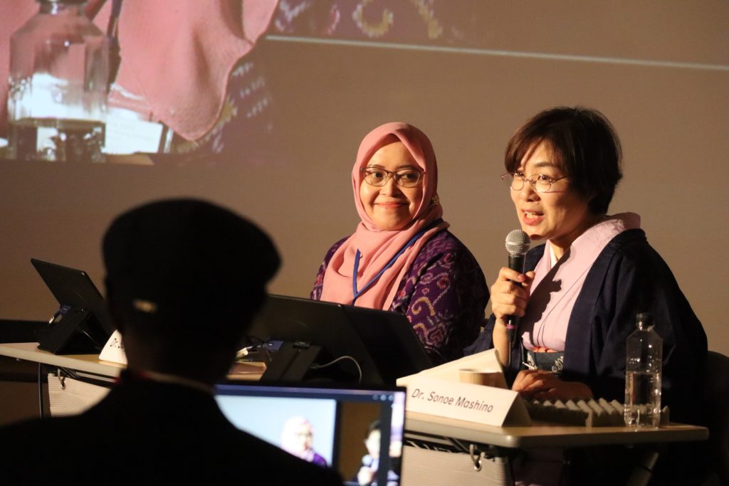 右:地域ケア開発研究所 増野園惠教授、左:インドネシア大学 スリヤネ・スリスティアナ・スサンティ助教授