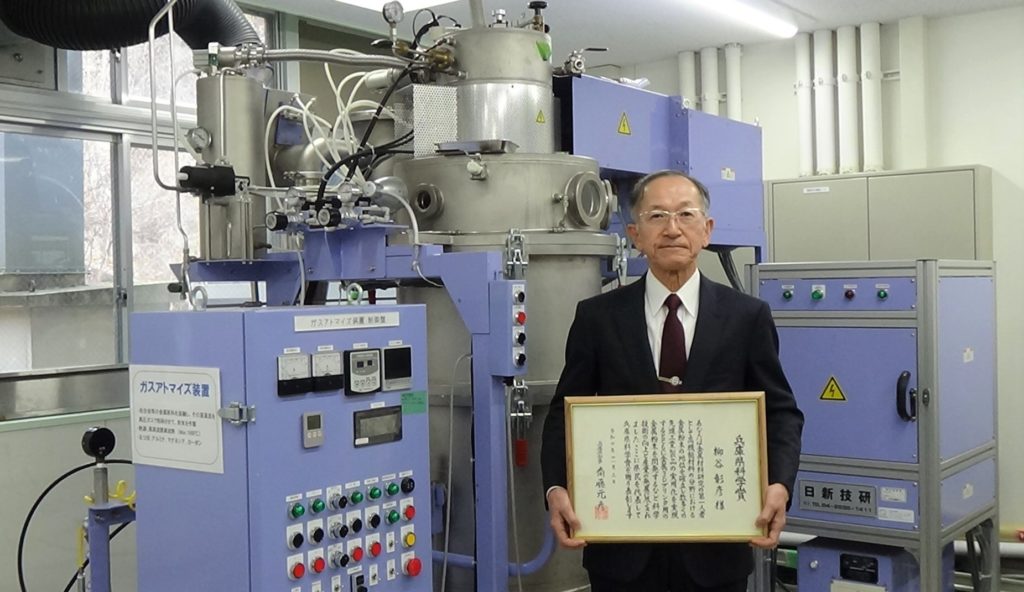 柳谷特任教授は、高圧ガス噴霧法を用いた金属粉末の作製に関する研究において、金属粉末作製時の凝固現象の制御により、高機能・高性能金属粉末材料の開発と実用化を果たしたこと、また、同金属粉末の成形に関する研究において、難加工・脆性材料の加工を可能としたことが評価され、今回の受賞に至りました。