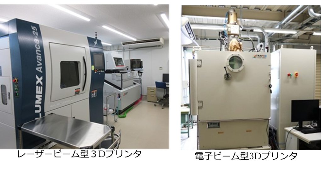 本センターでは、従来の鋳造や切削加工技術では不可能だった複雑な金属3D造形体の作製が可能であり、次世代の画期的な金属造形技術として世界中から関心を集めている金属3D積層造形技術(Additive Manufacturing 以下、金属AM)に注目し、チタンや銅などの高融点・高熱伝導の金属粉末にも対応可能な電子ビーム型と、窒素ガスやアルゴンガスの不活性ガス中で金属3D造形が可能なレーザービーム型の2種類の「金属用3Dプリンタ」を導入しています。さらに、アーク溶解装置や高周波溶解装置、ガスアトマイズ装置、粉末評価装置、電子線マイクロアナライザなど、金属新素材開発に必要な一連の装置も備えています。