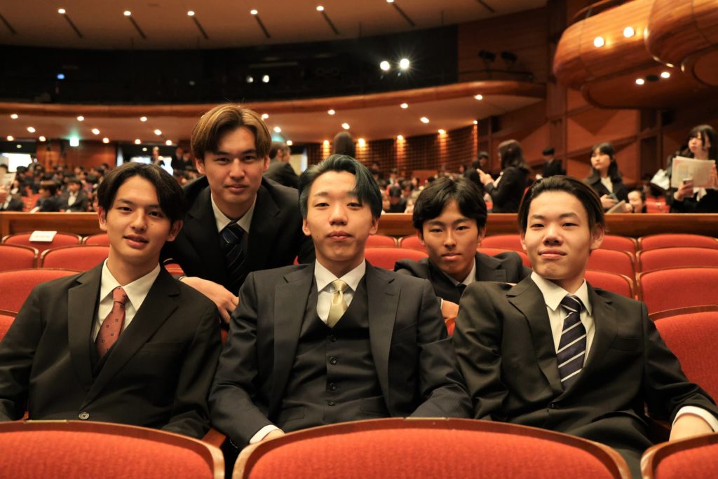 学歌斉唱では、兵庫県立大学看護学部合唱団LARIMARに所属する奥原一花さん、坂野莉子さん、春名優希さん、河村咲貴さん、福永奈々花さんの5名が伸びやかな歌声で学歌を斉唱しました。
